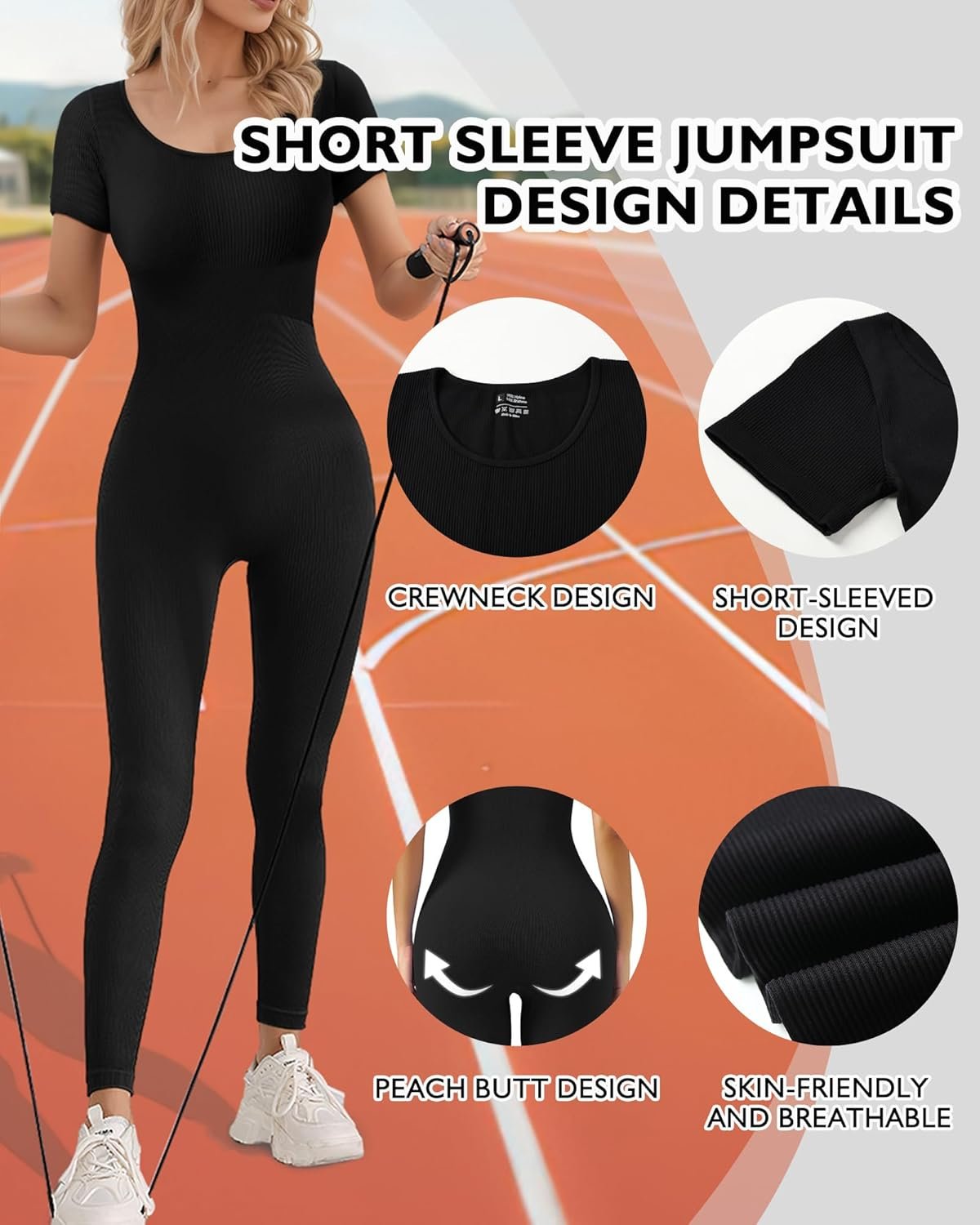 Jumpsuit for Women Workout Seamless Jumpsuits Ribbed One Piece Tank Tops Rompers Short Sleeve Exercise Jumpsuits