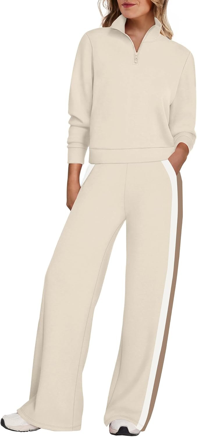 - Design: Two piece sets for women half zip up long sleeve sweatshirts,wide leg sweatpants,equipped with convenient pockets, contoured back for the most flattering rear view,elastic drawstring.